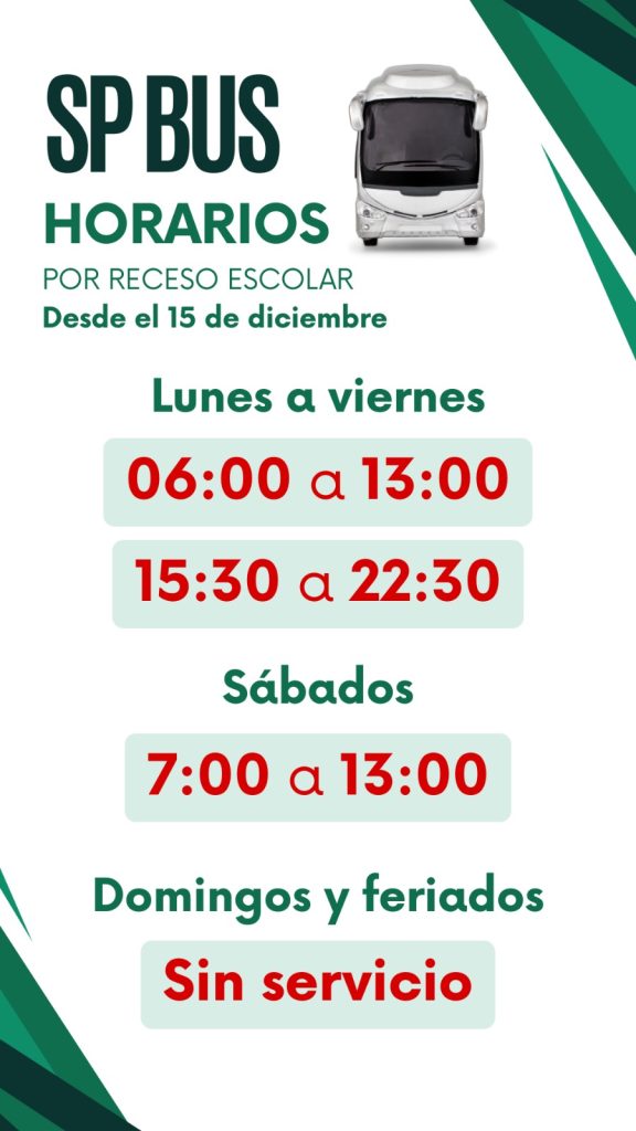 El SP Bus funcionará con horario reducido durante el receso escolar